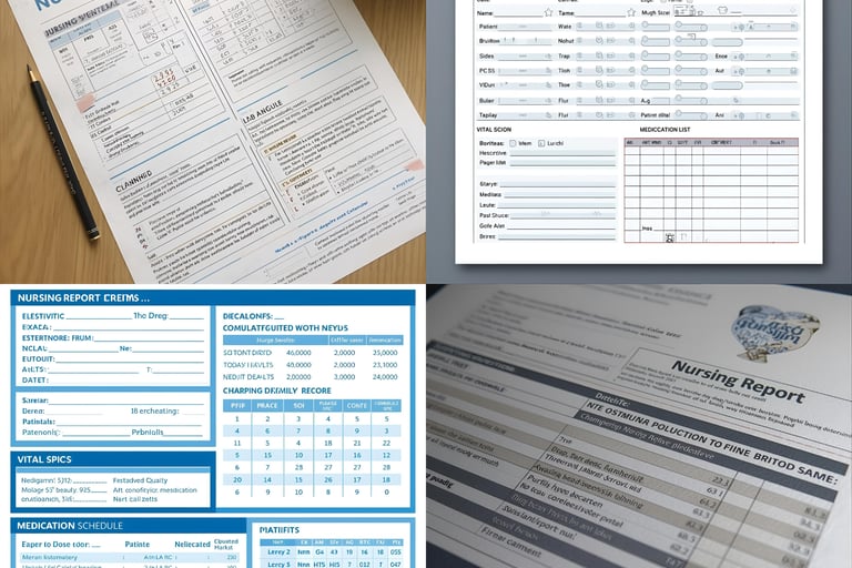HealthTasks.ai - Guide with 10 nursing report sheets/templates (SBAR & brain formats) covering multiple units.